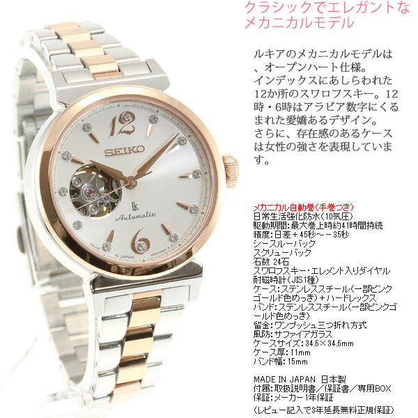 セイコー ルキアよりメカニカルモデルが、オープンハート仕様で登場。