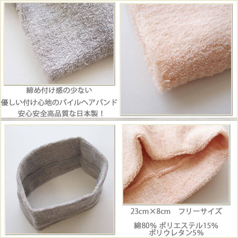 オーガニックコットン 日本製 しめつけ感の少ないやさしい着け心地のパイルヘアバンドです。