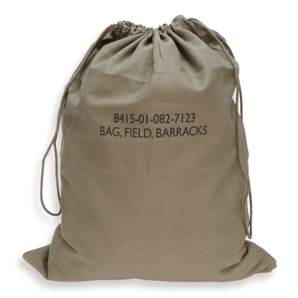 フロントには「8415-01-082-7123 BAG FIELD BARRACKS」の文字がプリントされています。